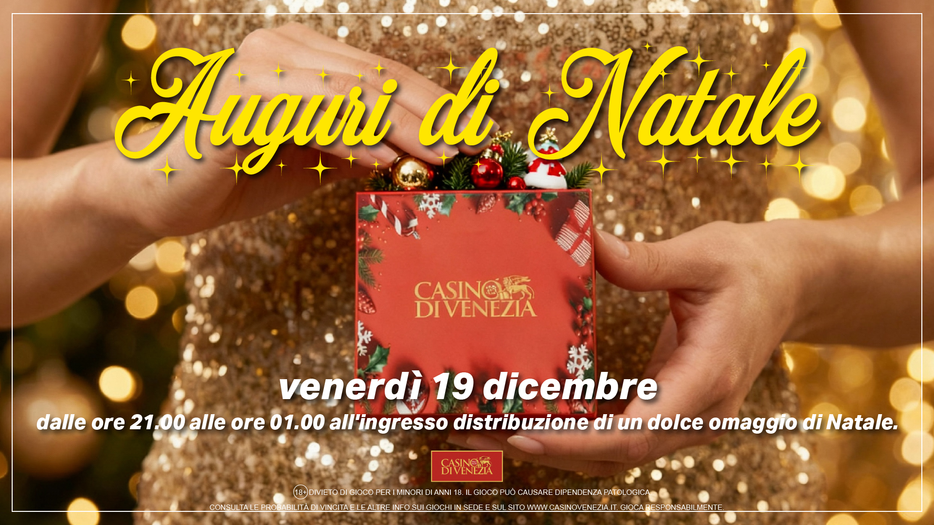 dalle ore 21.00 alle ore 01.00 all'ingresso distribuzione di un dolce omaggio di Natale.